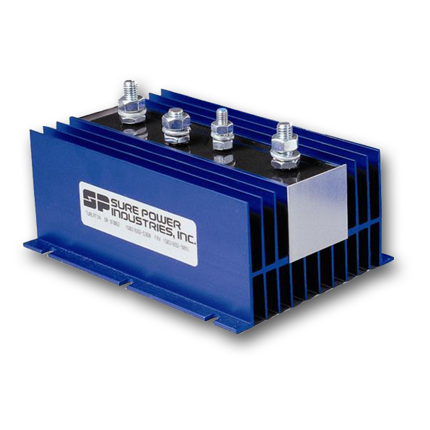 ACRs are automatic switches that sense when a charging source is being applied to either battery, and close when the voltage on one rises high enough to indicate it is at or near full charge (normally around 13.3V) until it decreases to a safe level. This prevents both batteries from draining when there is not enough current to charge both. One advantage of the ACR is that it can be used with outboard motors and inverter/chargers that also absorb starting current and thus won’t work with an isolator. ACRs can also simplify system design because chargers and regulators that work with a single battery bank will still work with a multiple battery bank.