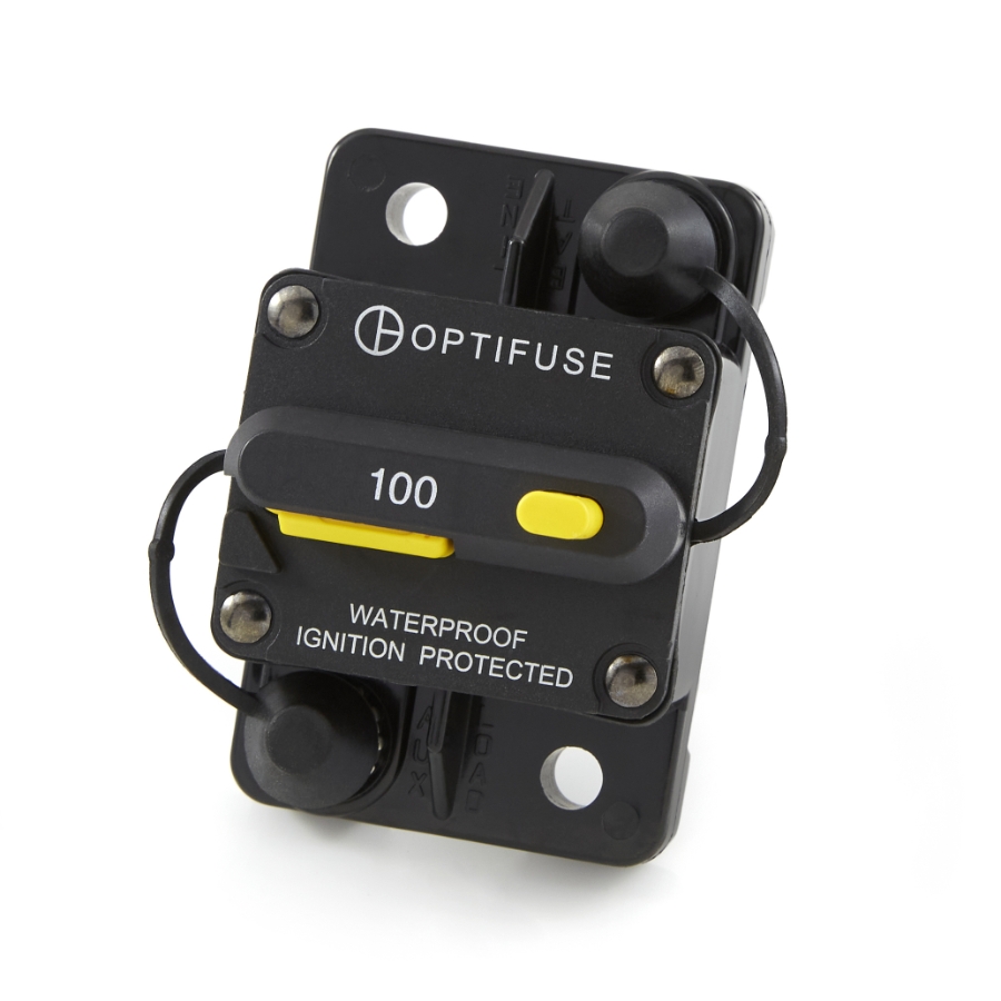 OptiFuse offers high-amp circuit breakers in type I auto reset and type III manual reset styles. These circuit breakers are IP67 rated, ABYC E-11 compliant and feature heavy-duty construction to protect accessory and auxiliary high amp-draw applications in marine craft, RVs, emergency vehicles, and heavy-duty trucks. They are available in models ranging from 30 to 200 amps.