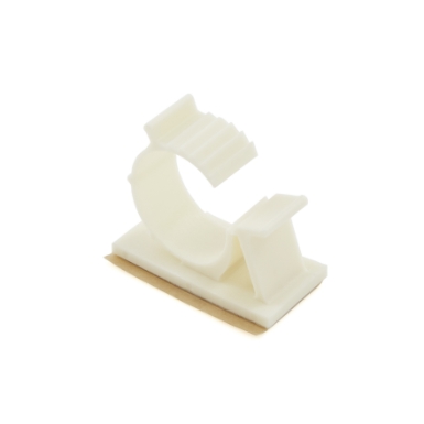 - Double-backed press-on clips – constructed of white nylon with a low-profile design and strong bonding for smooth, flat surfaces.